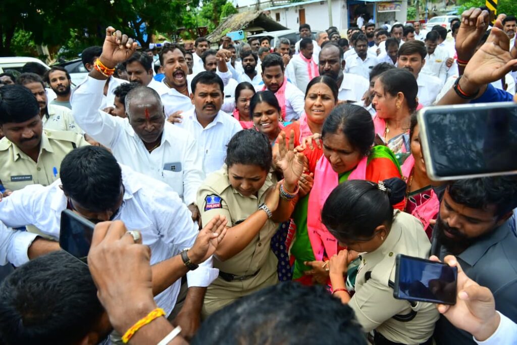 కాళేశ్వరం ప్రాజెక్టు నిర్మాణంపై కాంగ్రెస్ ప్రభుత్వం అసత్య ప్రచారం చేస్తున్నారని, ప్రభుత్వ కుట్రలకు నిరసనగా బీఆర్ఎస్ ఆధ్వర్యంలో సోమవారం చిన్నశంకరంపేట మండల కేంద్రంలో తెలంగాణ అమరవీరుల స్థూపానికి కాళేశ్వరం జలాలతో జలా అభిషేకం చేసిన బిఆర్ఎస్ పార్టీ మెదక్ జిల్లా అధ్యక్షురాలు, మాజీ ఎమ్మెల్యే పద్మా దేవేందర్ రెడ్డి. అనంతరం మెదక్ రహదారిపై బీఆర్ఎస్ నాయకులు పెద్ద సంఖ్యలో రాస్తారోకో చేపట్టారు. విషయం తెలుసుకున్న పోలీసులు మాజీ ఎమ్మెల్యేతో పాటు బీఆర్ఎస్ నాయకులను అరెస్టు చేసి పోలీస్ స్టేషన్ కి తరలించారు.