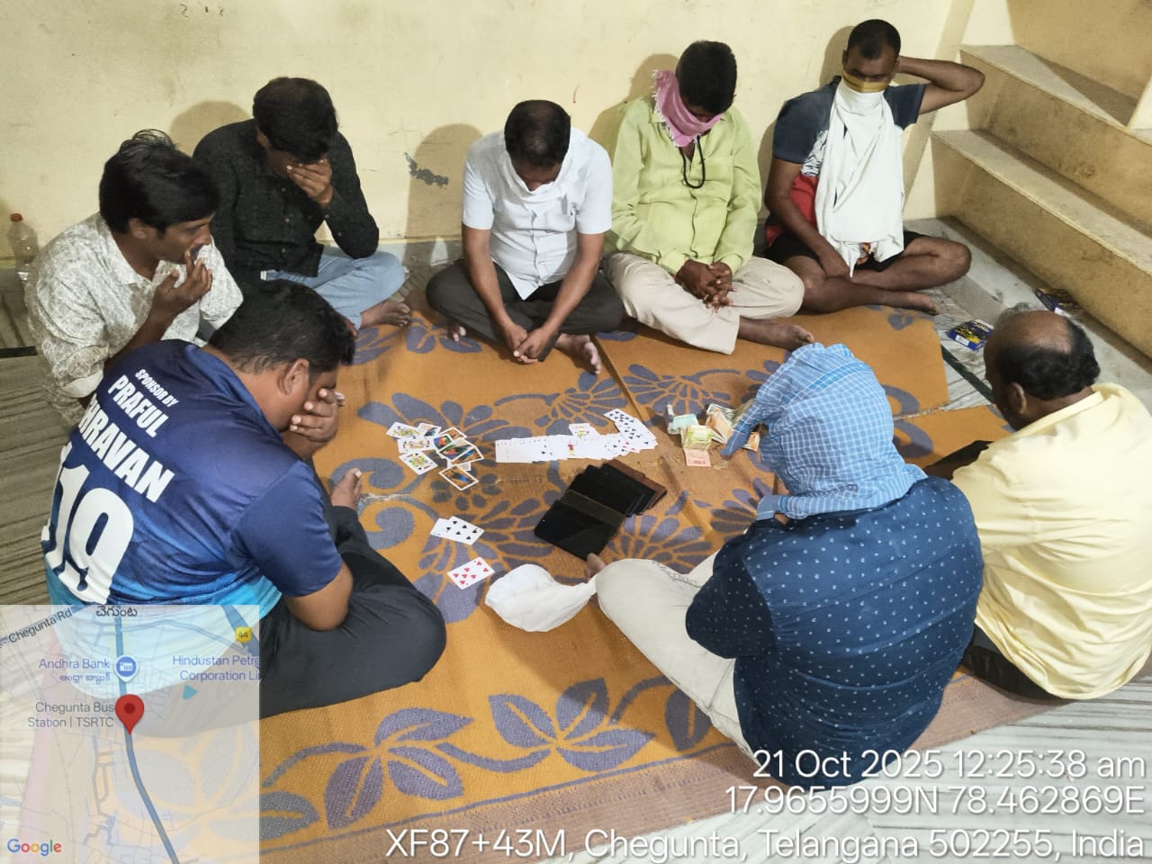 నయా తెలంగాణ న్యూస్ / మెదక్, అక్టోబర్ 21:మెదక్ జిల్లా చేగుంట మండల పరిధిలో పేకాట ఆడుతున్న వ్యక్తులపై టాస్క్ఫోర్స్ పోలీస్ లు మెరుపు దాడి చేసి పేకాటరాయులను పట్టుకున్నారు. వారి నుంచి రూ.58,060/- నగదు, 7 మొబైల్ ఫోన్లు స్వాధీనం చేసుకున్నారు. నిందితులను అరెస్ట్ చేసి స్థానిక పోలీస్ స్టేషన్ కు తరలించి కేసు నమోదు చేశారు. ఈ సందర్బంగా జిల్లా ఎస్పీ శ్రీనివాస్ రావు మాట్లాడుతూ చట్ట వ్యతిరేక కార్యకలాపాలకు పాల్పడితే కఠిన చర్యలు తీసుకోవడం జరుగుతుందని హెచ్చరించారు.