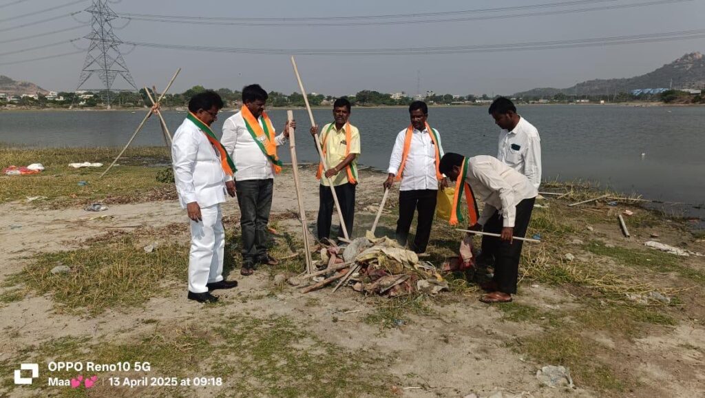 (ఏప్రిల్ 13), నయా తెలంగాణ / చౌటుప్పల్ : బీజేపీతోనే దేశం అభివృద్ధి జరుగుతుందని ఆ పార్టీ మునుగోడు అసెంబ్లీ కన్వీనర్ దూడల బిక్షం గౌడ్ అన్నారు. బీజేపీ పార్టీ రాష్ట్ర పార్టీ పిలుపుమేరకు ఆదివారం చౌటుప్పల్ మండలంలోని దండు మల్కాపురం, కొయ్యలగూడెం, డి నాగారం, పీపుల్ పహాడ్, అల్లాపురం చిన్న కొండూరు, పంతంగి, తంగడపల్లి గ్రామాలలో గావ్ మే చలో- బస్తి మే చలో కార్యక్రమం నిర్వహించారు. ఈ సందర్బంగా దేవాలయాల్లో స్వచ్ఛభారత్ కార్యక్రమం నిర్వహించారు. గ్రామాలలోని కుంటలు, చెరువులను సందర్శించి కేంద్ర ప్రభుత్వం అందజేస్తున్న సంక్షేమ పథకాలను లబ్ధిదారులతో చర్చించారు. ఈ కార్యక్రమంలో మండల అధ్యక్షులు కైరంకొండ అశోక్, రాష్ట్ర కౌన్సిల్ సభ్యులు కంచర్ల గోవర్ధన్ రెడ్డి, రిక్కల సుధాకర్ రెడ్డి, కట్ట కృష్ణ, పులిగిల్ల శ్రీనివాస చారి, నూనె మాధవి, చింతల ఎల్లేశా, ఈడుదుల ఐలయ్య యాదవ్, సురేందర్, శివ తదితరులు పాల్గొనడం జరిగినది.