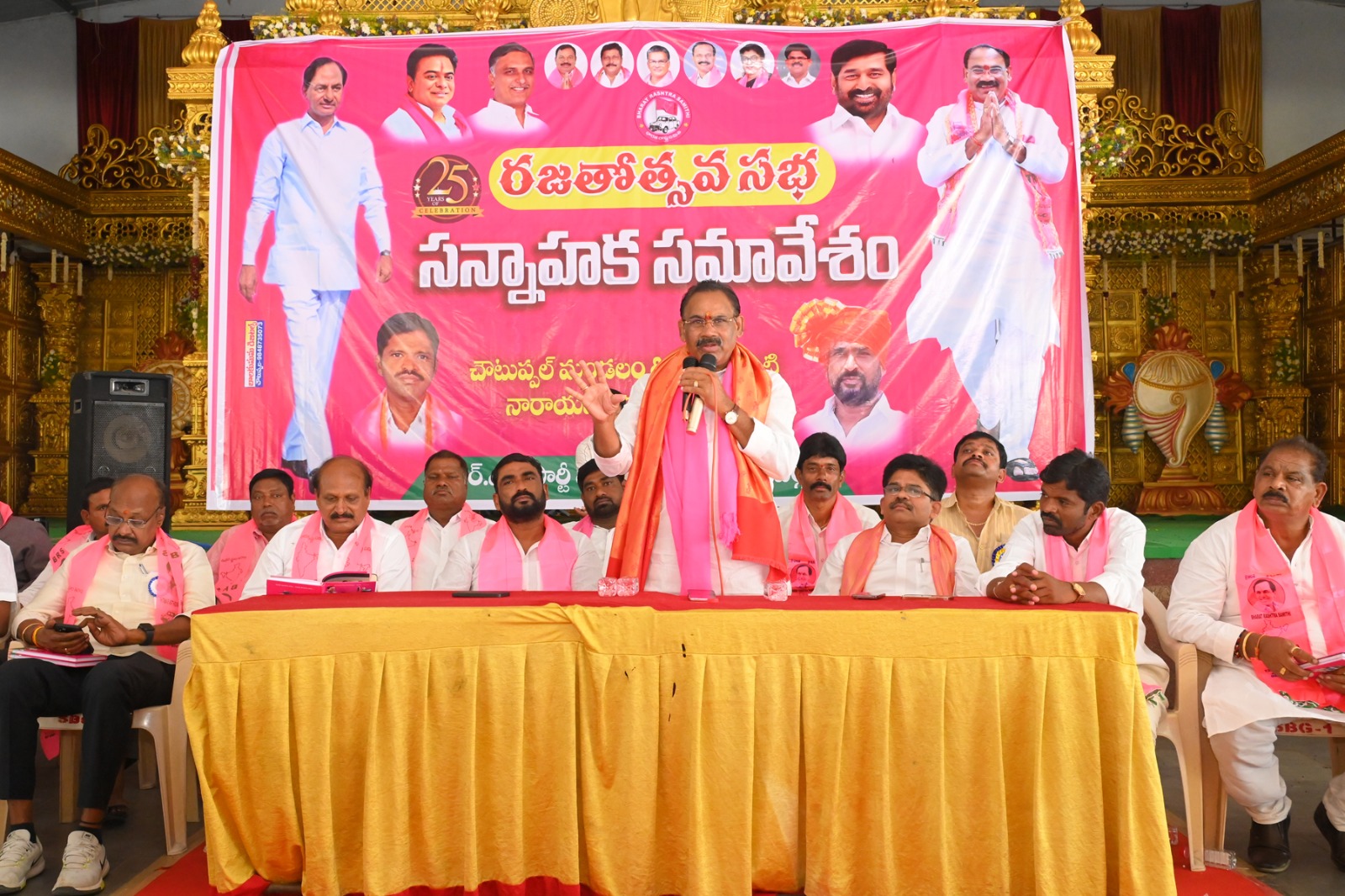 మునుగోడు ఎమ్మెల్యే కోమటిరెడ్డి రాజగోపాల్ రెడ్డికి మంత్రి పదవి పై ఉన్న యావ ప్రజల సంక్షేమం పట్ల లేదని మునుగోడు మాజీ ఎమ్మెల్యే కూసుకుంట్ల ప్రభాకర్ రెడ్డి తీవ్ర స్థాయిలో మండి పడ్డారు. చౌటుప్పల్ మండలం దామెర గ్రామంలో సోమవారం బీఆర్ఎస్ పార్టీ రజతోత్సవ సన్నాహక సమావేశం జరిగింది. ఈ కార్యక్రమానికి కూసుకుంట్ల ప్రభాకర్ రెడ్డి ముఖ్య అతిధిగా హాజరై మాట్లాడారు. మునుగోడులో ఎక్కడ చూసిన తాను చేసిన అభివృద్ధి మాత్రమే కనిపిస్తుందని, ఈ ప్రాంతానికి కోమటిరెడ్డి రాజగోపాల్ రెడ్డి చేసిన అభివృద్ధి ఏమి లేదన్నారు. రాజగోపాల్ రెడ్డి కి ఎంతసేపు మంత్రి పదవి మీద యావ తప్ప ఈ ప్రాంత ప్రజల సమస్యల పై పట్టింపు లేదని ఆగ్రహం వ్యక్తం చేశారు. రాజగోపాల్ రెడ్డి ఊసరవెల్లిలా రంగులు మారుస్తున్నారని, రాజగోపాల్ రెడ్డి పెద్ద బ్లాక్మెయిలర్ అని ఆరోపించారు. రేవంత్ రెడ్డి పీసీసీ పదవి రూ. 40 కోట్లకు కొన్నారని, ఉత్తమ్ కుమార్ రెడ్డి పై తీవ్ర స్థాయిలో విమర్శలు చేసిన రాజగోపాల్ రెడ్డి ఇప్పుడు మంత్రి పదవి కోసం వారిని పొగుడుతున్నాడని అన్నారు. ఎంపీ ని గెలిపించిన అని చెబుతున్న రాజగోపాల్ రెడ్డి కి దమ్ముంటే తన ఎమ్మెల్యే పదవికి రాజీనామా చేసి పార్టీ సపోర్ట్ లేకుండా తన మీద పోటీ చేసి గెలవాలని సవాలు విసిరారు. కాంగ్రెస్ పార్టీ పై ప్రజలకు నమ్మకం పోయిందని, కాంగ్రెస్ పార్టీ చేపట్టిన ప్రతి కార్యక్రమం అట్టర్ ప్లాప్ అవుతున్నాయని అన్నారు. కాంగ్రెస్ పార్టీ పై ప్రజలు తిరగబడుతున్నారని, రాబోయే రోజుల్లో బీఆర్ఎస్ పార్టీ ఖచ్చితంగా అధికారంలోకి వస్తుందని ధీమా వ్యక్తం చేశారు. ఈ నెల 27న వరంగల్ లో జరిగే రజతోత్సవ కార్యక్రమానికి ప్రజలు, కార్యకర్తలు అధిక సంఖ్యలో హాజరై విజయవంతం చేయాలని కోరారు. ఈ కార్యక్రమంలో పల్లె రవి కుమార్, ఆందోజు శంకర చారీ, చింతల దామోదర్ రెడ్డి, పెద్దిటి బుచ్చి రెడ్డి, ముటుకులోజు దయాకర్ చారీ, నర్రి నర్సింహా, గడ్డం మురళీధర్ రెడ్డి, జక్కిడి ధనవంత్ రెడ్డి తదితరులు పాల్గొన్నారు.